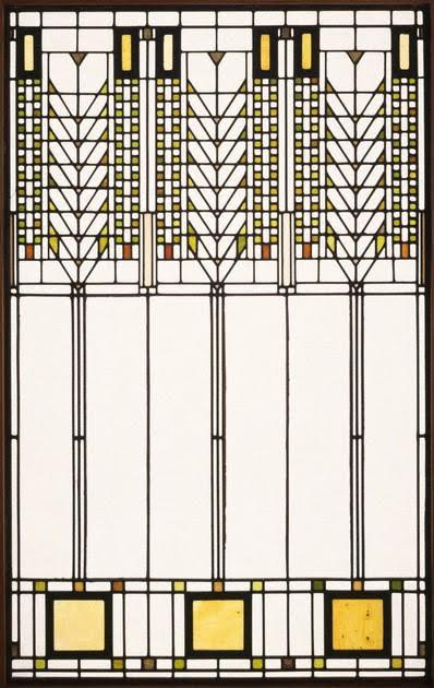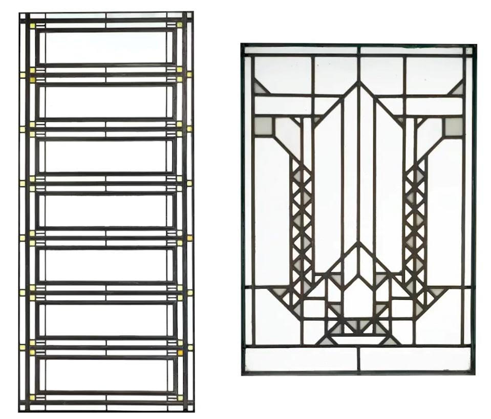 بعض النوافذ التي قام (رايت) بتصميمها كانت تعتمد على البساطة مع وضوح التكوين، محتوية على أشكال هندسية مفصلية، ومتكتلة بشكل متوازن مع مساحات مفتوحة من الزجاج غير المزخرف.