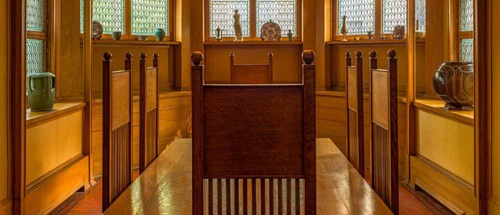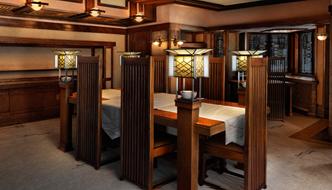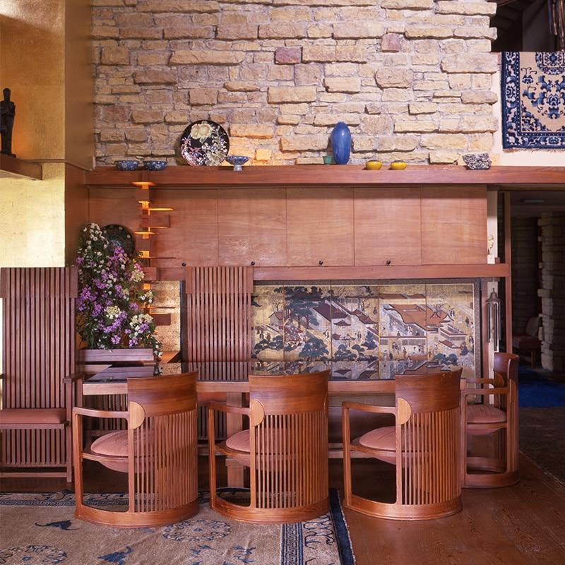 الأثاث الذي قام بصنعه رايت كان عنصراً مكملاً للمنزل وامتدادًا لمساحاته الجمالية في آن واحد، متأثراً بالفن والأثاث الياباني، على ضوء ذلك قام بتصميم عناصر بسيطة وأنيقة لكن متطورة بحيث لا تسبب ضوضاء بصرية على صورة المشهد.