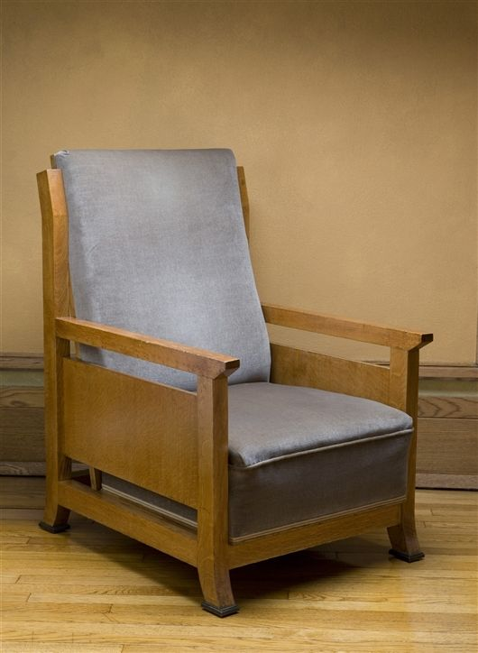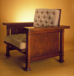كرسي بظهر مرتفع: صُمّم هذا الكرسي لمنزل العميل وارد ويليتس في هايلاند بارك إلينوي. صنع من خشب البلوط بإطار ثقيل يُعبّر عن حقبة تصاميم منتصف القرن، ويكاد يكون منزل وارد بجميع القطع المصاحبة له بطاقة تعريف كأول تطبيق لطراز مدرسة برايري، وهو أحد الطرز الأبرز شيوعاً في الغرب الأوسط للولايات المتحدة، ويتميز بخطوطه الأفقية، والأسقف المسطحة أو المنحدرة مع حواف متدلية عريضة، ونوافذ تتكّل في شريط أفقي، لتتكامل صورة المبنى مع المناظر الطبيعية المحيطة والبناء الصلب والاستخدام المنضبط للزخرف، وقد صُمم الكرسي خصيصاً لطاولة الطعام.